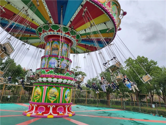 儿童森林嘉年华是孩子们的乐园,海盗船、风火轮、冲上云霄、自旋滑车等都是孩子们的最爱。