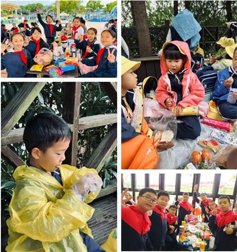 集章活动结束后,孩子们在户外进行了野餐,大家在茵茵草地铺上自己带来的野餐垫,在上面铺展开的不仅仅是自己携带的食物,更是乐于分享、友好互助的美好品质。野餐时,孩子们认真做到老师要求的“活动讲文明,垃圾不落地”!