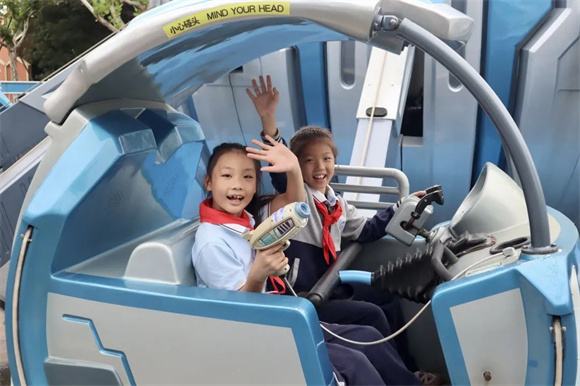 儿童森林嘉年华是孩子们的乐园。摩天轮、星球大战、小火车等都是孩子们的最爱。在游戏中,孩子们欢呼雀跃,挥洒童年!