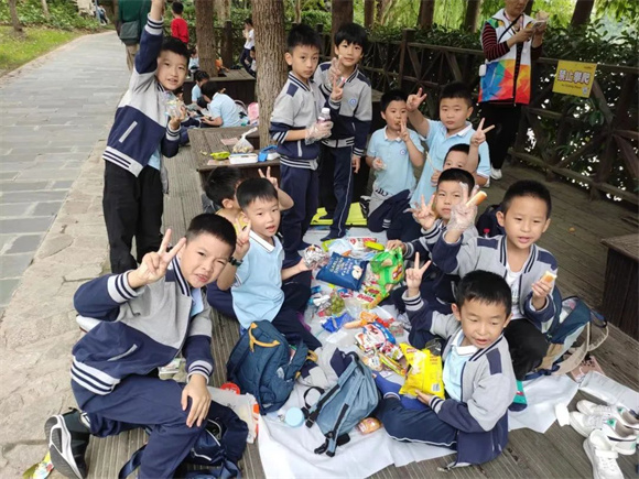 美食当然不能独享,“你尝尝我的吧!”孩子们纷纷捧着自己的食物与旁边的小朋友分享。笑声和欢笑回荡在空气中,每个人都享受着美食和友谊的美好时光。野餐结束,华小娃们拿出提前准备好的垃圾袋,在享受自然的同时,也不忘保护好自然哦!
