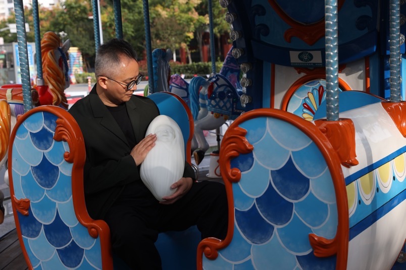 这个雕刻有婴儿小脸的大米粒被艺术家紧紧的抱在怀里,艺术家深情的凝视着这个“大米宝宝”,如同凝视自己的亲生孩子一般,这一幕显得古怪又温暖,荒诞又可爱,顿时吸引无数人的关注。