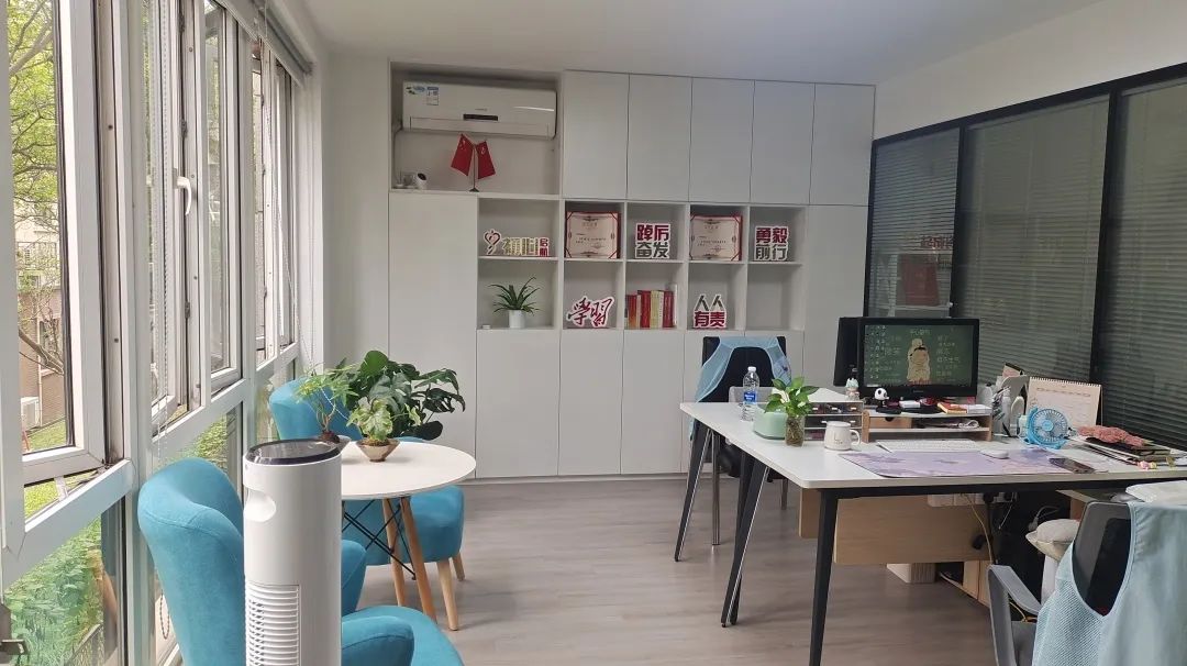 凤凰景苑居民区党群服务站优化功能布局,将原本在三楼的办公室迁移至一楼,设置开放式办公,一门式服务;调整功能室,根据居民需要,将三楼原办公空间打造为亲子活动空间,并增设值班室、冲淋房、茶水间等配套服务空间;四楼原空间格局不变,维持舞蹈、烘焙、老年活动等功能;保留计生、档案、库房、谈心谈话等单独封闭和隐私保护空间。