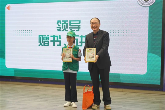 上海市集邮协会青少年集邮工作委员会主任李龙根先生为少年邮局局长蔡宜轩赠书。同时,李龙根先生代表上海市集邮协会青少年集邮工作委员会,向上海浦东张江高科少年邮局成立表示祝贺,并提出了殷切的希望:加强学习,努力工作,把"少年邮局"建成小学生社会实践活动的新品牌。以集邮文化为切入点,以少年邮局为平台,丰富校园文化生活,把传统文化和现代信息科技有机结合,把锻炼学生能力和培养集邮兴趣相结合,以寓教于乐的形式在学生中普及书信文化和集邮文化知识。