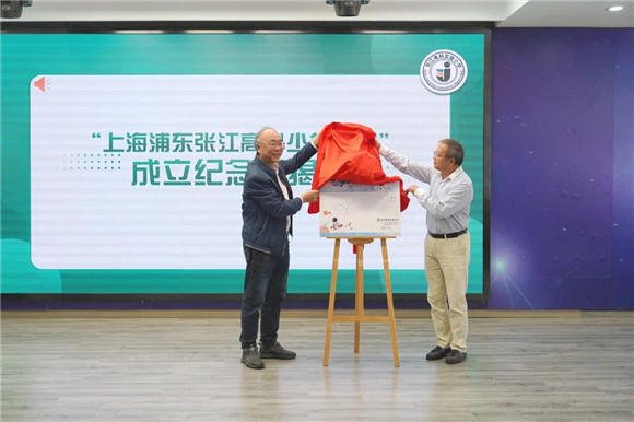 市集邮协会青少委副主任汪明章先生、神州教师集邮联谊会上海分会会长、浦东新区青少年集邮研究会会长王春荣,为上海浦东新区张江高科少年邮局成立纪念封揭幕。