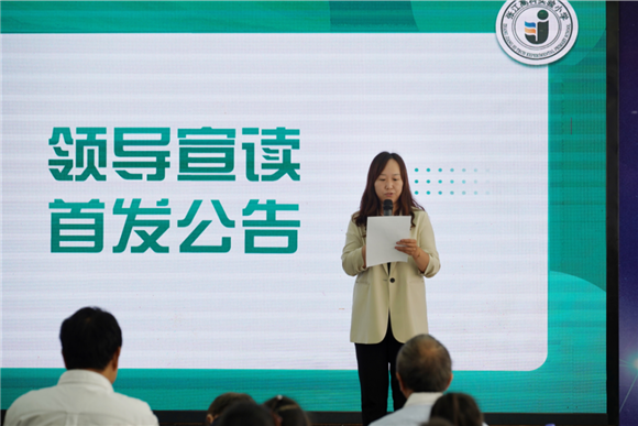 浦东新区邮政分公司市场部经理杨艳女士宣读“药用植物(三)邮票”首发公告。