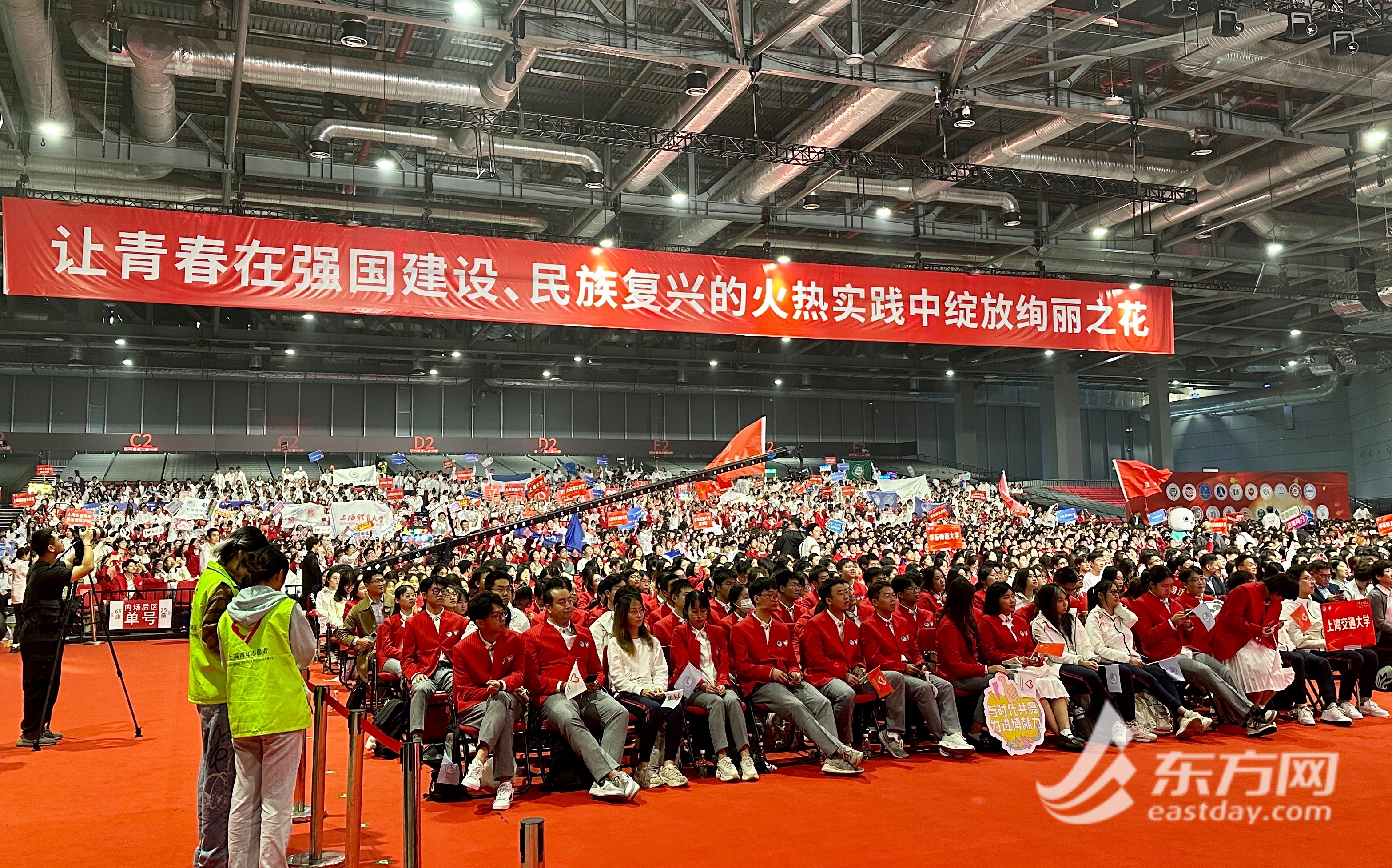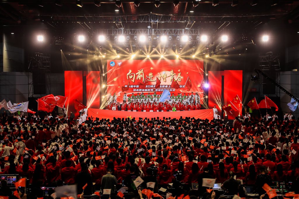 第六届中国国际进口博览会志愿者上岗宣誓仪式暨志愿者临时党、团组织成立仪式现场