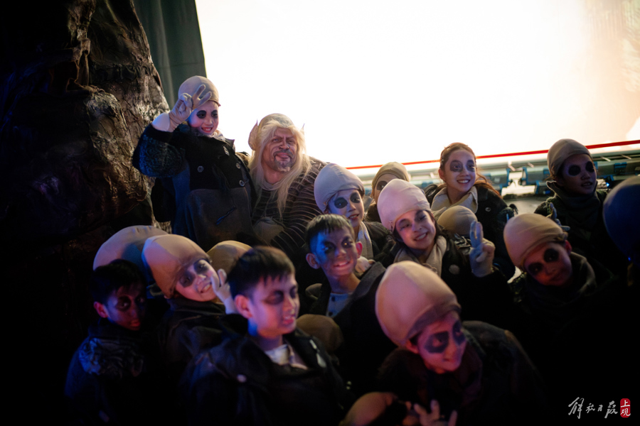 演后,演员和参与群演的中国孩子们在后台一起合影。