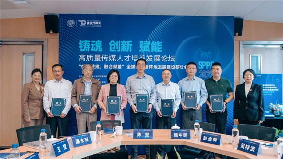 为积极响应国家创新创业号召,充分发挥高校人才孵化器优势,推动学校整体转型发展,2023年10月15日下午,上海出版印刷高等专科学校举行了“校媒共建 融合赋能”全媒体传播阵地发展建设研讨会。来自上海各区融媒体中心的主任、行业专家以及张波影视艺术系名师工作室的学者们参与了本次会议。《上海市融媒体行业技能人才知识结构调查高校融媒体实验室建设现状分析报告白皮书》正式发布,同时与会人员还共同签约了《校融联盟合作框架协议》。