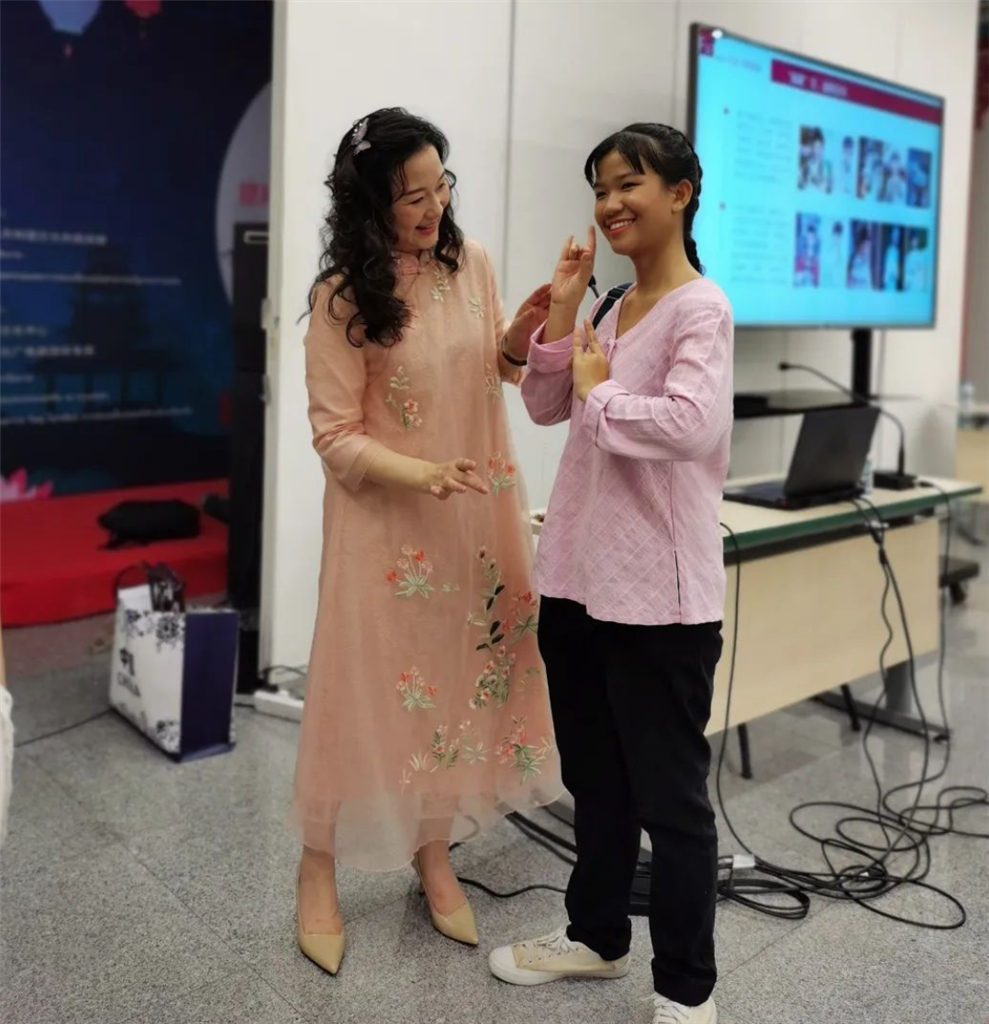 16日下午,“宝哥哥”和”林妹妹”走进曼谷中国文化中心,参加2023“中国故事”系列讲座之“越趣讲堂”。方亚芬老师担纲主讲人,主演王清、俞景岚、郭茜云,化妆师史林宽,服装师刘程程共同参与。讲座吸引了200余名艺术爱好者以及热爱中国文化的泰国民众,还有一批来自泰国著名学府朱拉隆功大学戏剧艺术系的学生。