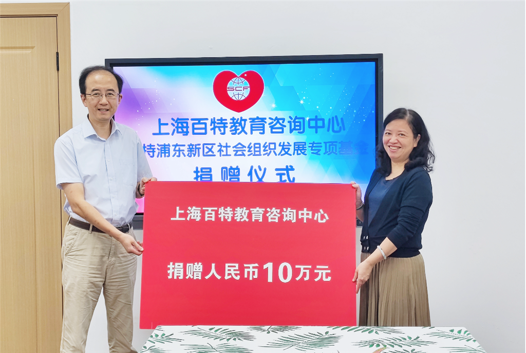 上海市慈善基金会浦东新区社会组织发展专项基金捐赠仪式近日在云山路金杨党群中心举行。维世致新(上海)智能技术有限公司捐赠20万元,上海百特教育咨询中心捐赠10万元,定向用于上海市慈善基金会浦东新区社会组织发展专项基金。
