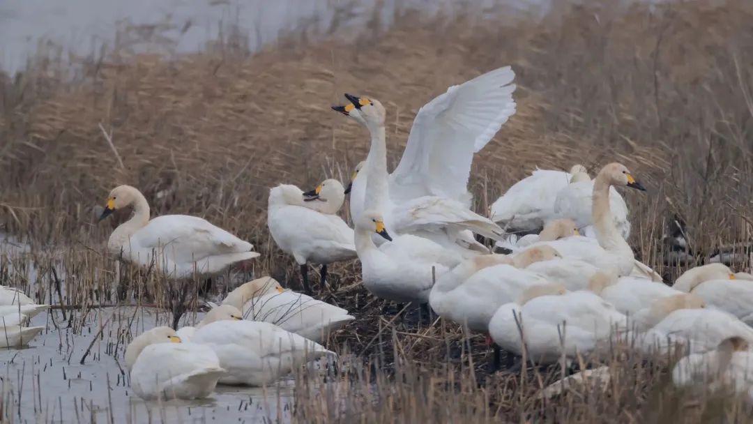 大量越冬候鸟抵达上海崇明东滩,白头鹤、小天鹅等“老友”回归