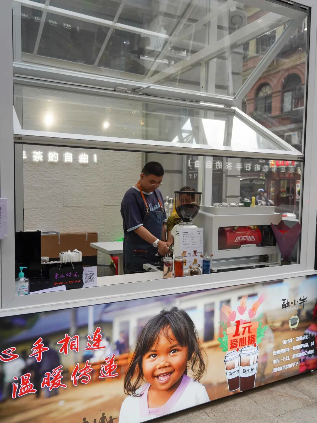 这个微缩版的“咖啡庄园”里,还有一个电视屏,播放着位于云南普洱江城咖啡庄园的实景视频。这是黄浦区融媒体中心为黄浦对口帮扶云南普洱、为藏在“深闺”中的普洱咖啡打响知名度,用24小时慢直播的形式,为当地的乡村振兴持续聚力赋能。