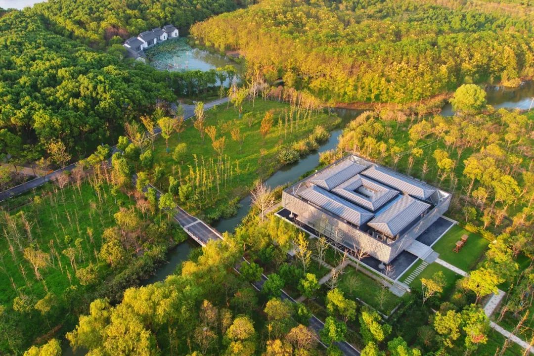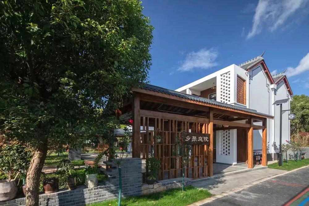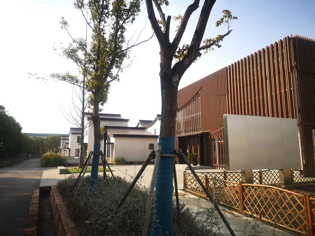 漫步渔沥林盘,你会看到绿树环合中有着白墙黑瓦的16栋宅子,这里是潮流音乐小镇,而小镇中央的红褐色建筑则是林盘展示厅。该项目是由上海市奉贤区庄行镇人民政府与上海无限未来咨询管理有限公司共同合作投资建设的音乐文化娱乐创新项目,目前林盘项目已经完成整体招商,由北京潮石音乐科技有限公司控股租用,已经吸引薛之谦、张靓颖、刘雨昕、凤凰传奇、张信哲等多名知名艺人入驻。