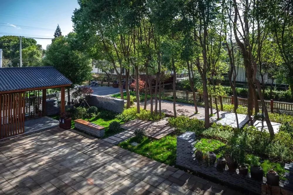 在渔沥林盘的东边,潮流音乐小镇隔壁,穿过小桥流水,踏过石板小路,你会看到一方庭院,这里是南上海文化创意产业园、农艺公园总部园的办公场所。庭院外绿树成荫,一路相隔便是村民家的菜园子,这样的组合,让经济有了质感,让农村有了品质。