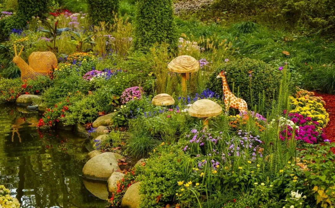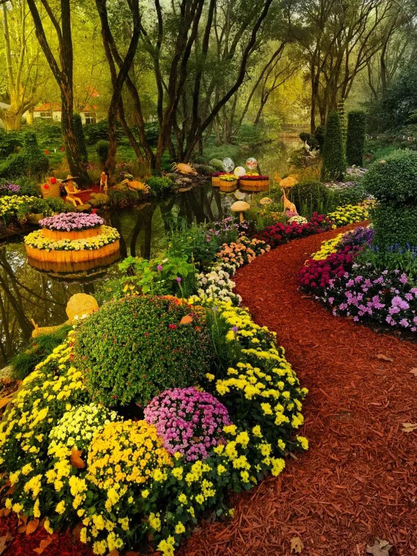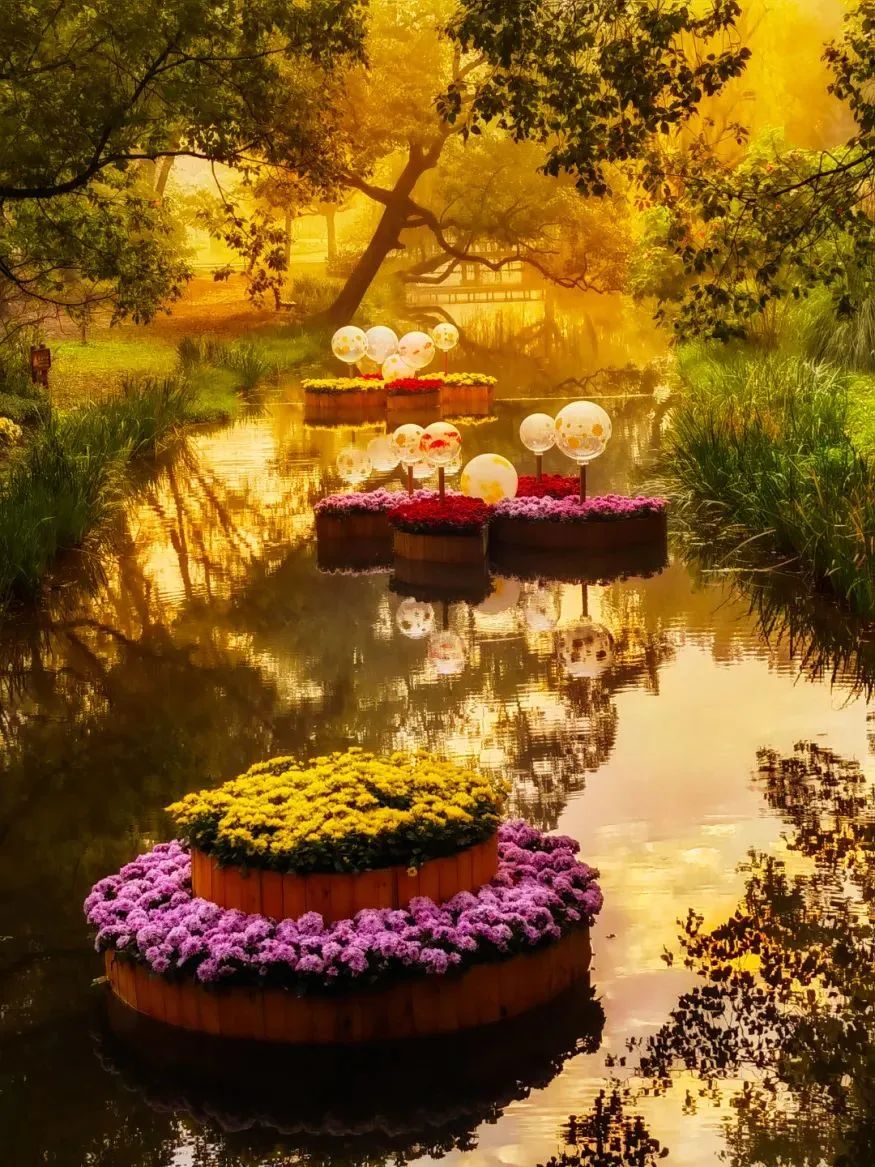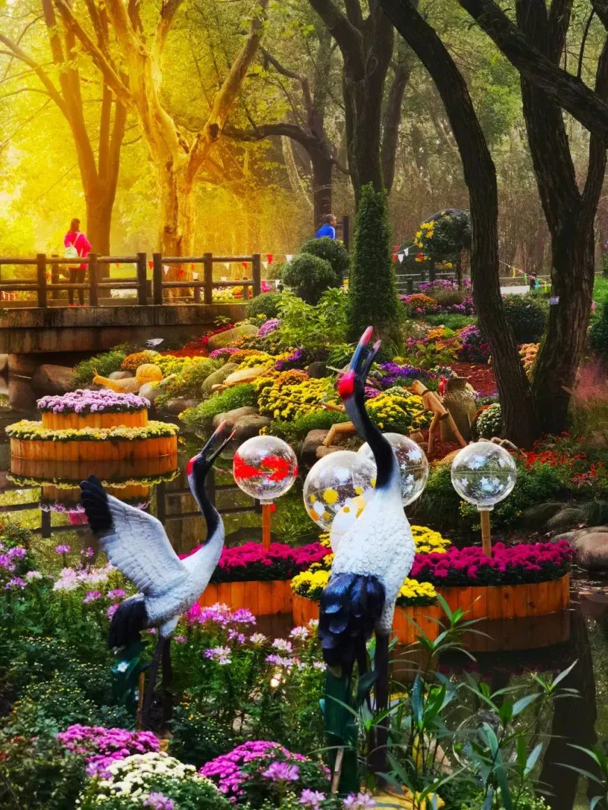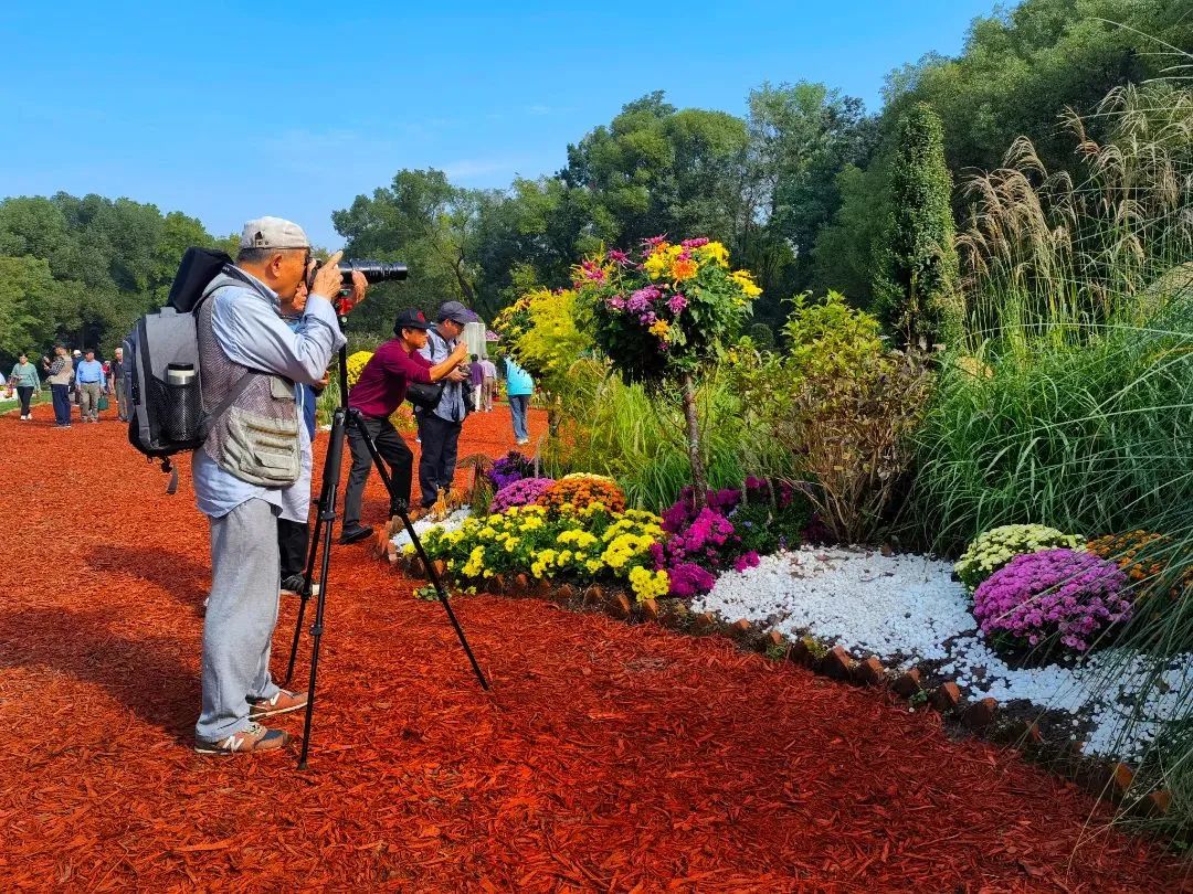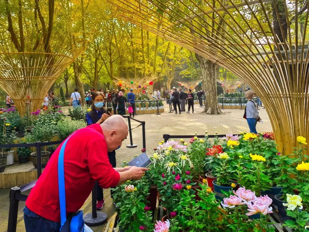 本次菊花展秉持节约办展、绿色环保的生态理念,在主题景观布置过程中减少了绿雕的使用,增加了竹、木、藤等生态材料的使用,结合花境植物,打造更具自然风格的菊花特色景观,传递人与自然和谐共生的生态文明理念。
