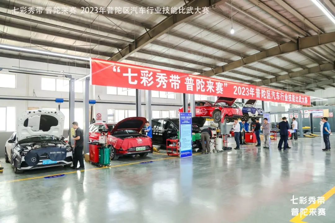 10月31日,2023年普陀区职工“七彩秀带 普陀来赛”汽车维修技能比武竞赛在普陀区桃浦镇新杨园区举行。一场以实干技能PK为主题的赛事吸引了从事汽车产业的技能工人、新就业群体共同参与。普陀区人大常委会副主任、区总工会主席姚军出席活动。上海市交通委工会,以及普陀区人社局、教育局、桃浦镇、真如镇街道、长风新村街道等相关负责人共同参与。
