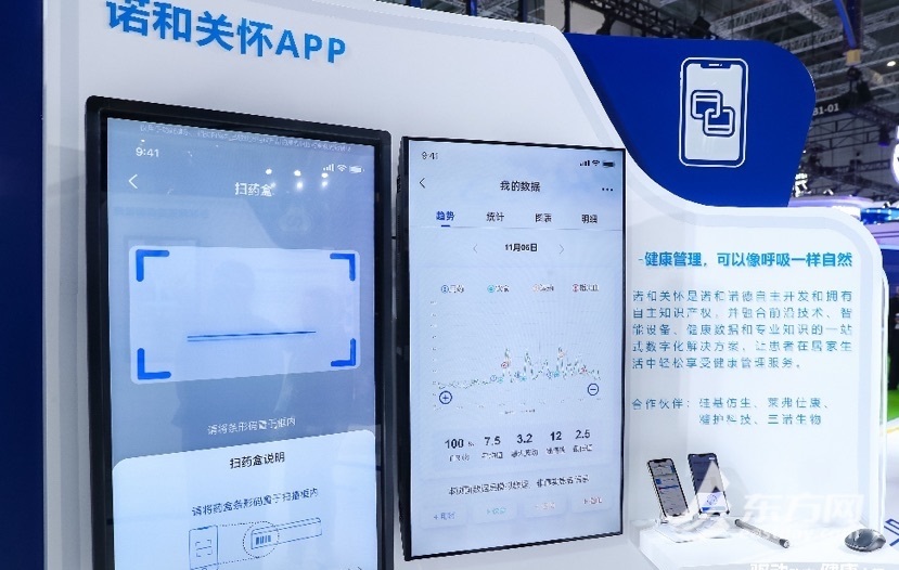 我国已成为全世界糖尿病患病人数第一位的大国,其中,糖尿病患者的治疗率仅有32.9%,血糖控制达标率仅16.5%,事实上,糖尿病患者的自我管理水平与其生存质量呈正相关,良好的自我管理水平可以稳定血糖并延缓慢性并发症的发生与发展。今年进博会上,诺和诺德带来自主开发的一站式智能化糖尿病自我管理解决方案——诺和关怀APP,这是一款可以同时连接诺和诺德胰岛素笔,动态血糖仪及多品牌指尖血糖仪,并为其他可穿戴设备预留对接能力的患者服务平台。通过同步数据自动上传与输入记录,以及整合用药、血糖、饮食、运动多项数据在“一屏”中直观显示,帮助提升患者依从性,改善血糖控制,提高生活质量,让控糖变得更智能、更简单。