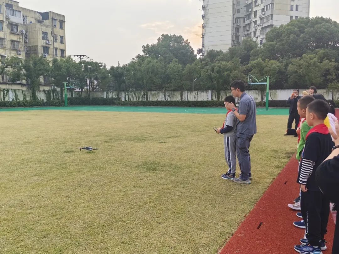 为了让同学们对无人机有亲身体验,老师带领同学们来到操场,手把手地教大家如何操控无人机,并给同学们讲解了无人机涉及的法律法规和安全飞行的注意事项。平推起飞按钮,调整飞行方向,平稳安全着陆......孩子们在老师的带领下手握操作盘,深切感受到科技带来的快乐。
