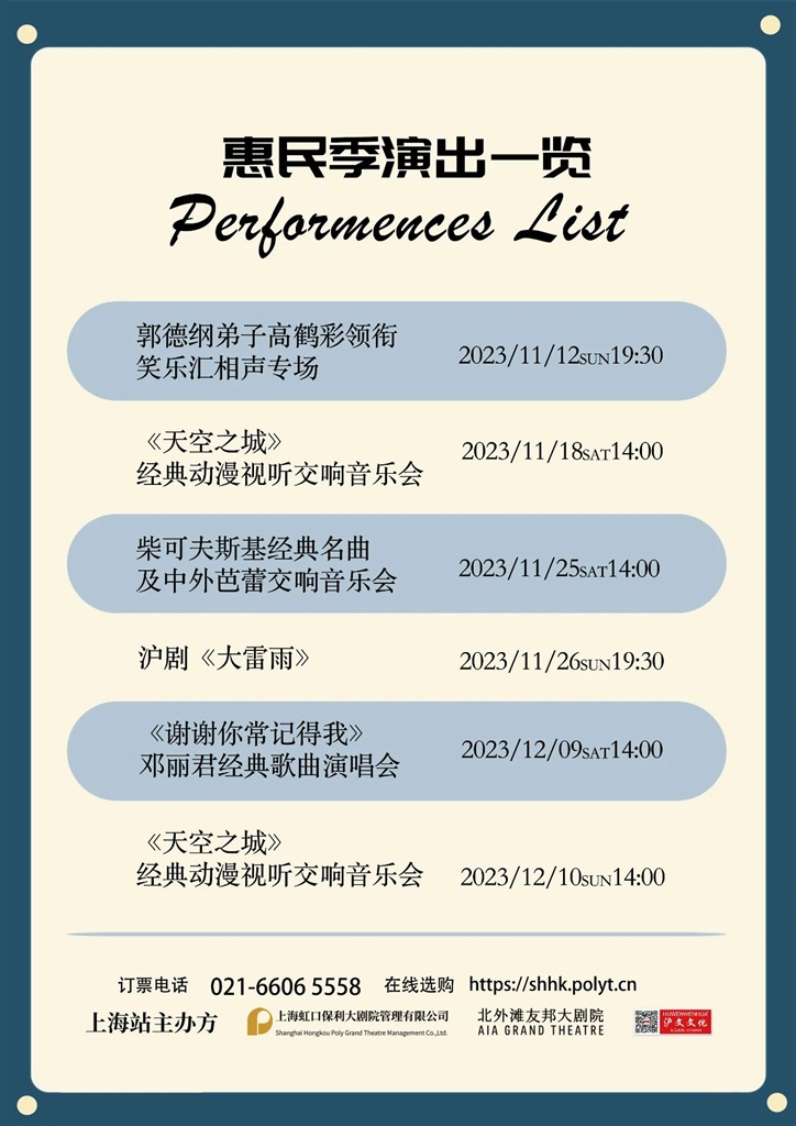 每个周末至少一场!惠民公益季系列演出将登陆北外滩友邦大剧院