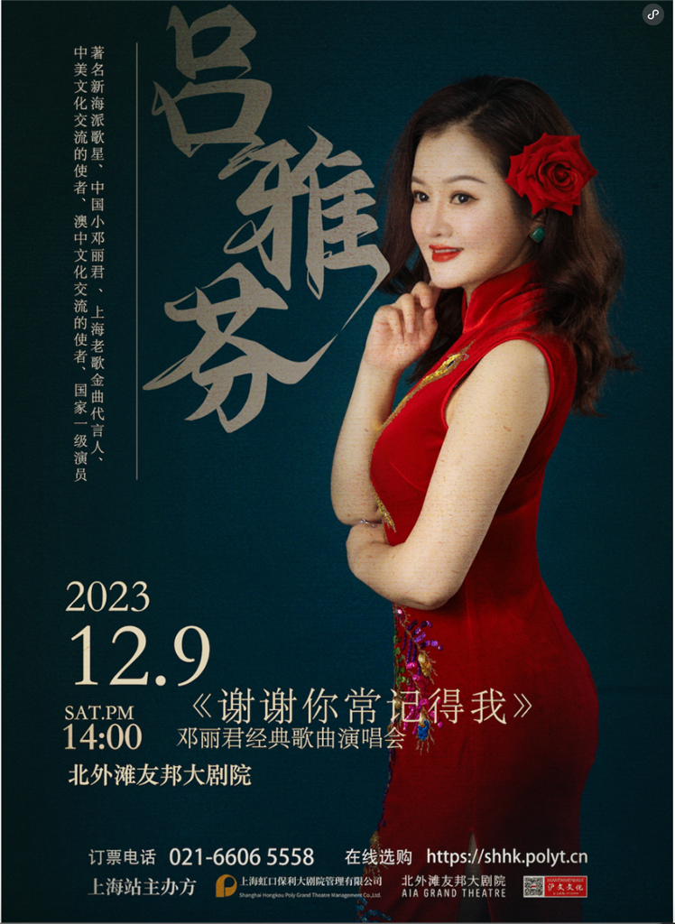 时至今日,多次受邀到美国、加拿大、澳大利亚巡演;已于国内外成功举办近百场个人独唱音乐会, 被田文仲(原邓丽君节目主持人)先生评价为:“台风十分稳健,成熟,与邓小姐的台风非常相似,形似、神似......”