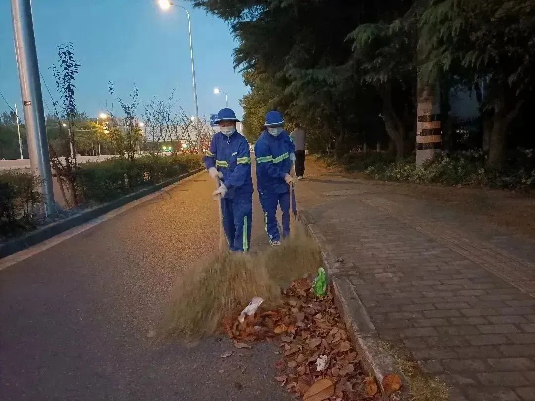 公司提前制定道路清扫方案,采用人工清扫和机械作业相结合的方法,适时调整作业方式,让人工清扫的灵活机动性与机械化清扫的广泛覆盖性相辅相成,从而提升清洁力度和效果。针对主要干道、人行道和集中落叶路段,增加人员密度和巡回作业频率,保障落叶即扫即清,避免二次污染。