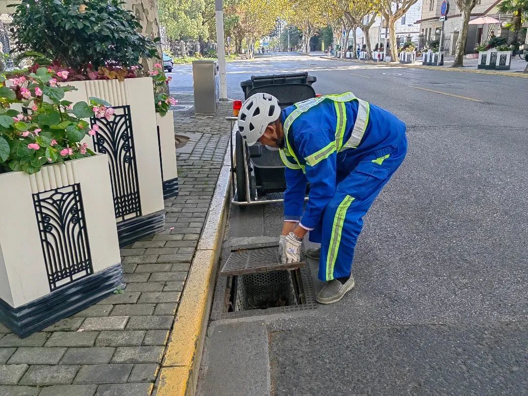 对于作业区域内的道路窨井和排水篦子,作业人员跨前一步进行清理,巡回人员定期检查,及时清理堆积落叶,清除降雨排水不畅的隐患。