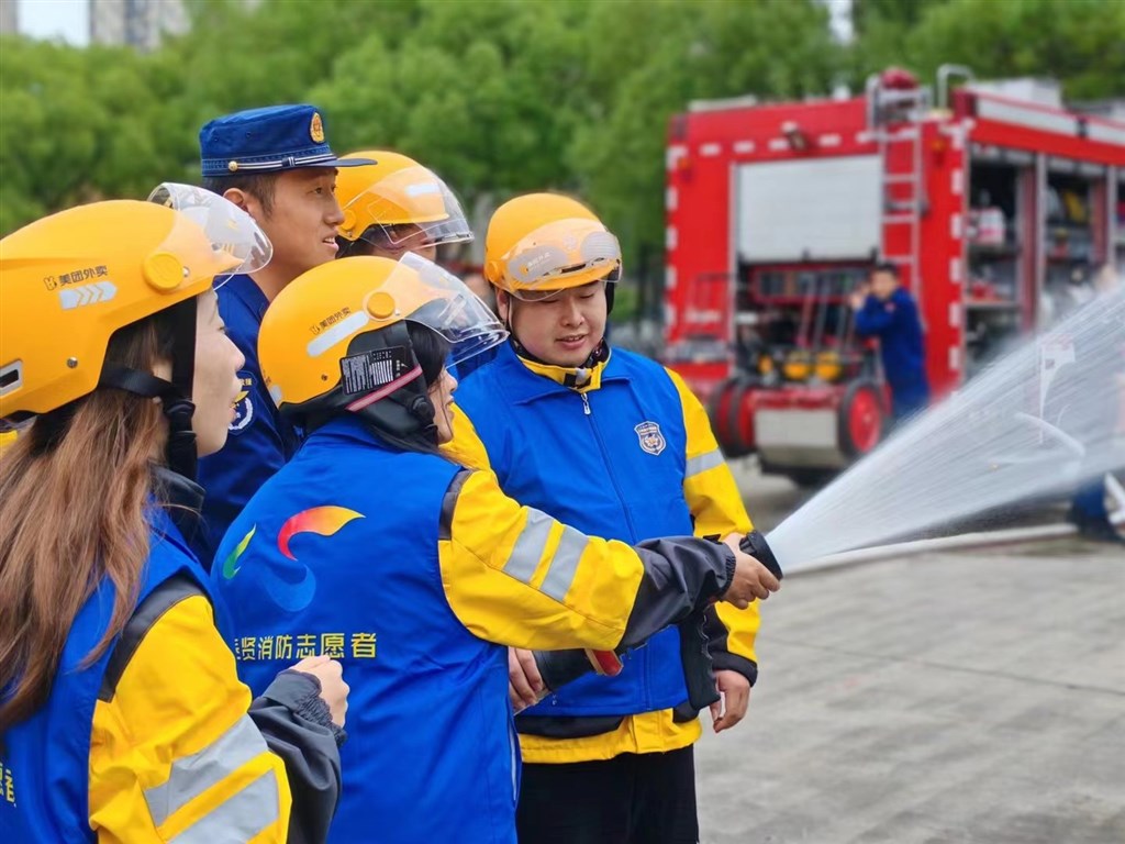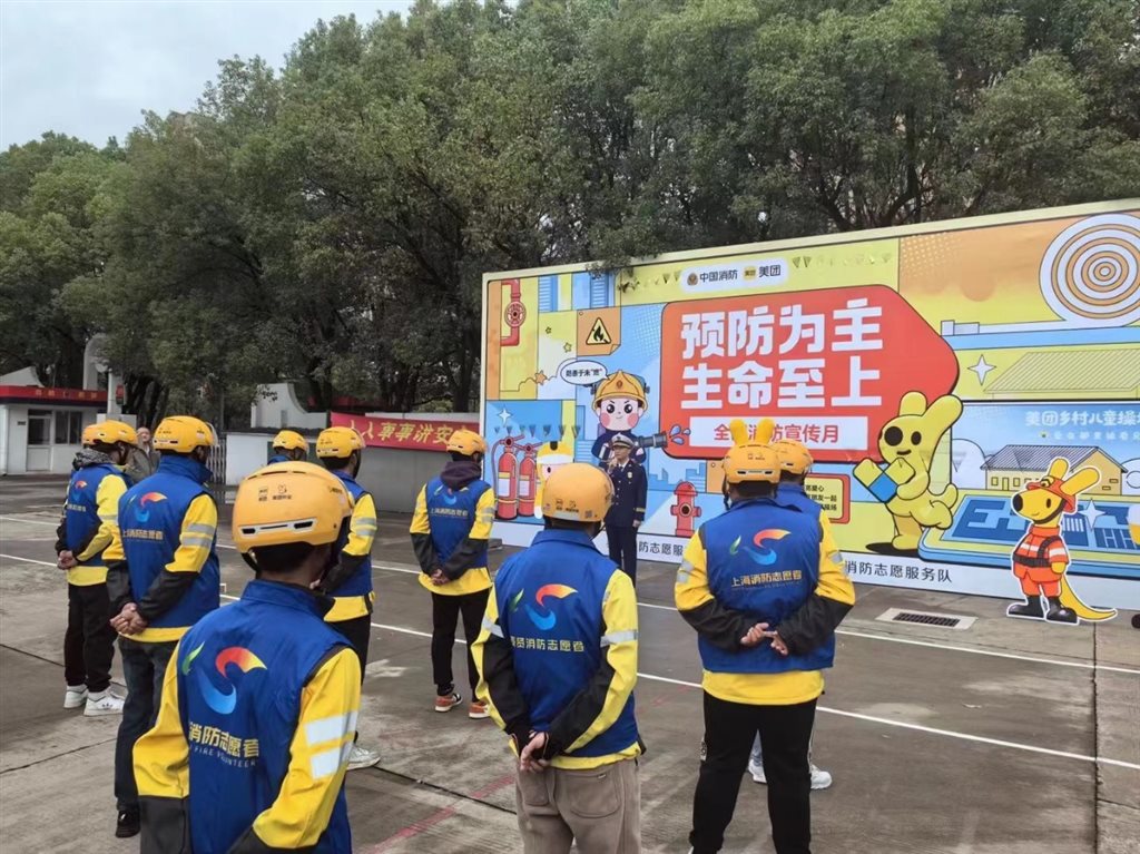 (图:上海美团配送骑手参与奉贤消防救援实景演习 )