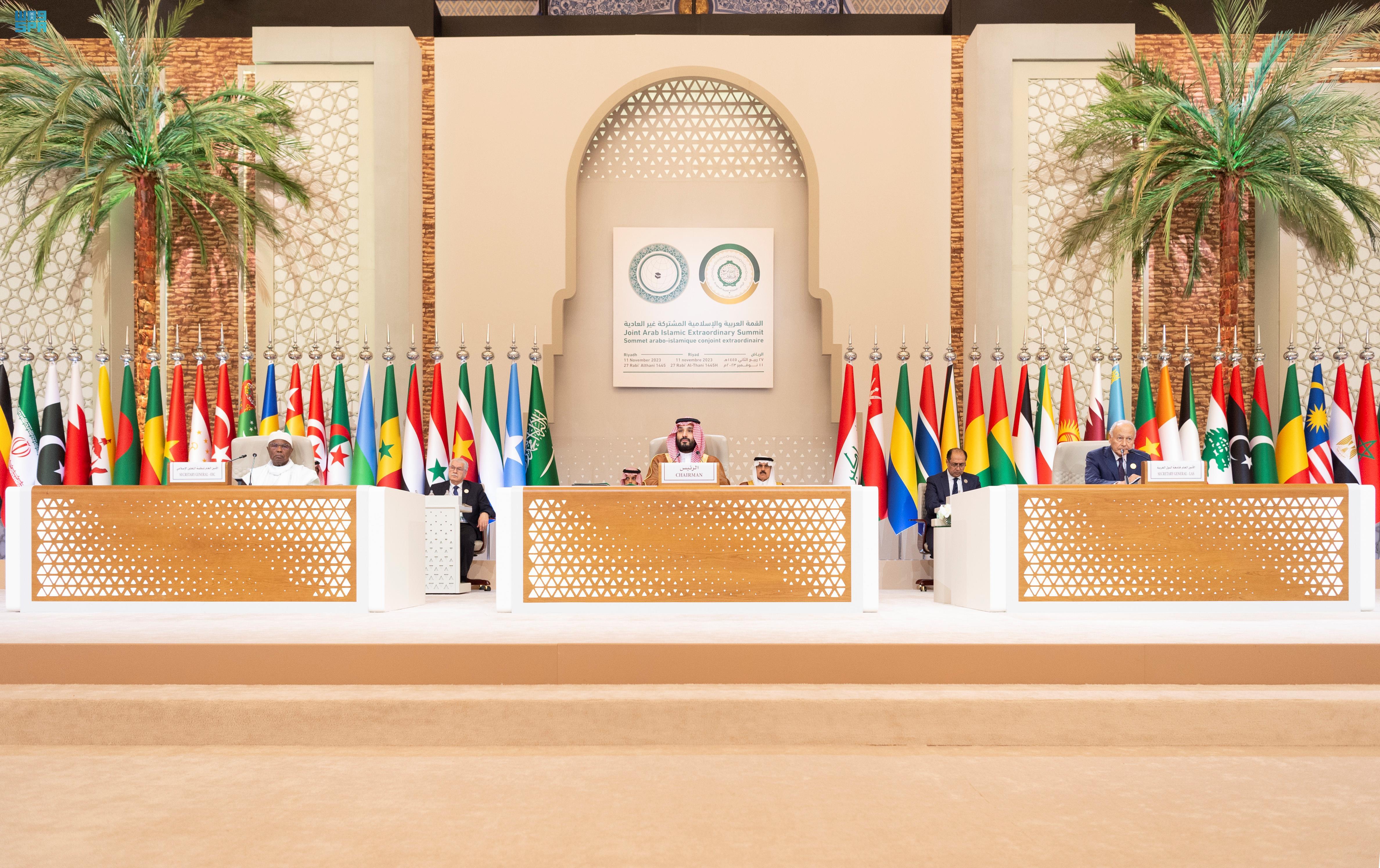 沙特外交部在会前发表的一份声明中说,各方决定举行“联合特别峰会”,而非分别举行“阿拉伯国家领导人峰会”和“伊斯兰国家领导人峰会”,这表明各国领导人认识到应就加沙地带局势提出统一立场,以表达阿拉伯国家和伊斯兰国家的共同意愿,阻止事态进一步扩大。