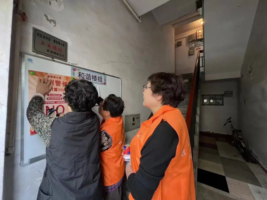 活动当天,这两个支部的党员向居民们普及消防知识,比如楼道内不能堆积杂物、严禁电瓶车在楼道内充电。另外,楼组长和志愿者三五人一组,分区域为永泉公寓的29幢门栋贴消防海报,宣传楼道内需要注意的消防注意事项。