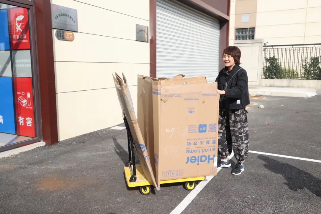 一大早,便有不少市民朋友们拿着可回收物来到了站点进行回收。“‘双十一’买了不少东西,有很多纸板箱,正好换季很多衣服我也不想穿了,就想拿来回收掉。这里离我家近、很方便,积少成多嘛!”市民程小姐说道。