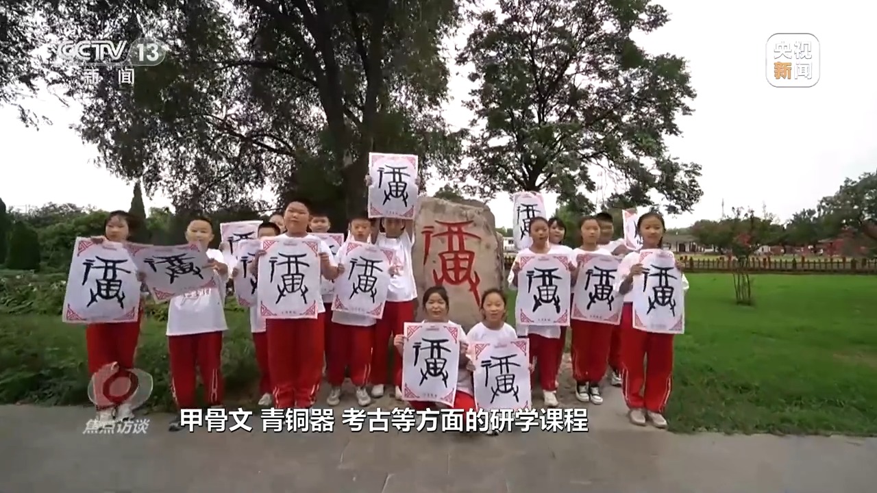 河南安阳殷墟景区研学部老师 刘珊珊:历史文化的传承不是死记硬背,尤其像殷墟这么有距离感的商代文化。我们团队针对学生结合了殷墟的重要元素,开发了具有体验性、趣味性的甲骨文、青铜器、考古等方面的研学课程,让文化传承的过程更有意义了。