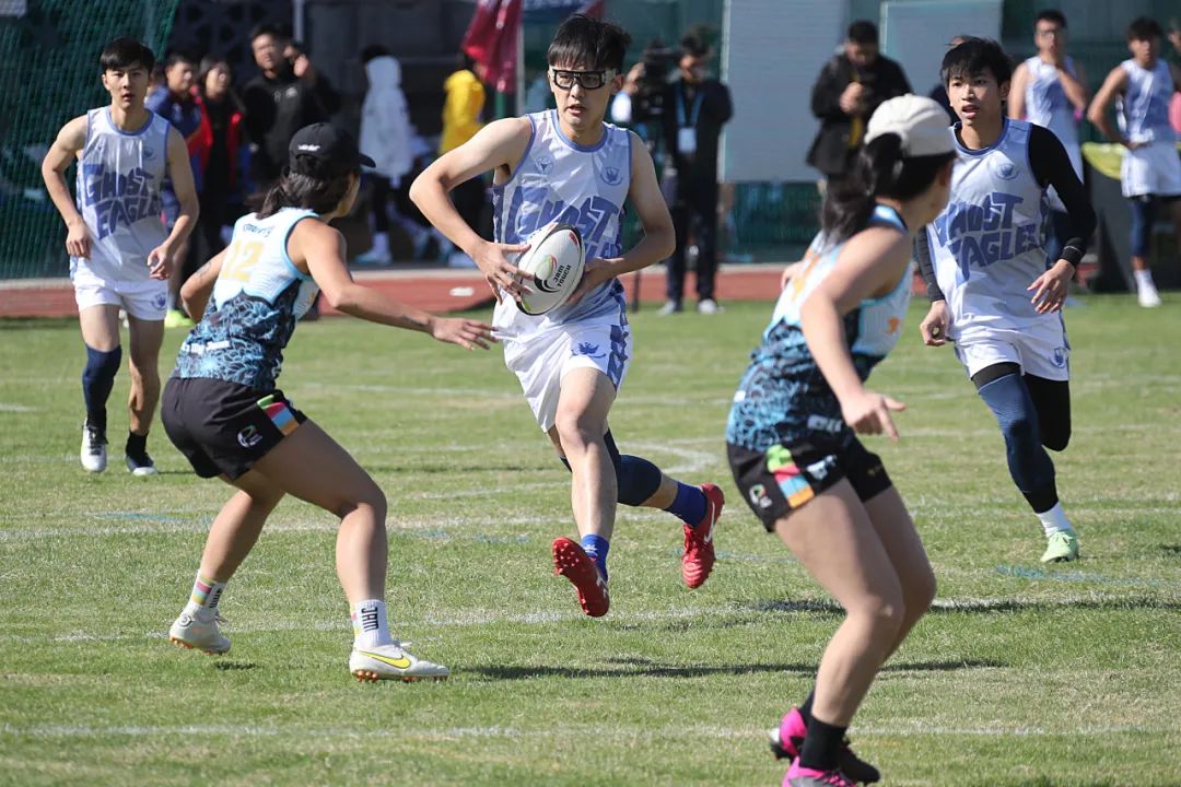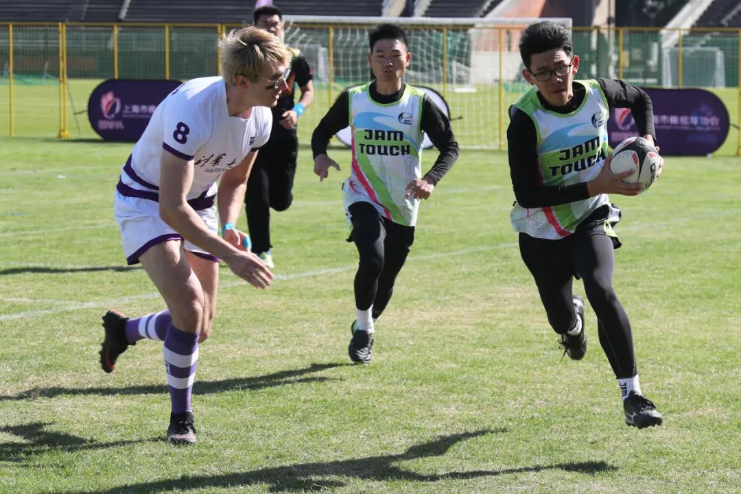 本次比赛共有来自全国各地的26支队伍,分别来自上海、北京、香港、杭州、宁波、嘉兴等地。赛场上,球员们追逐拼抢,尽享橄榄球运动带来的快乐。