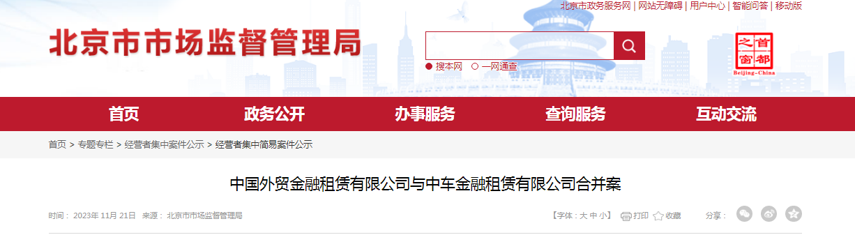中国外贸金融租赁有限公司与中车金融租赁有限公司合并案.docx