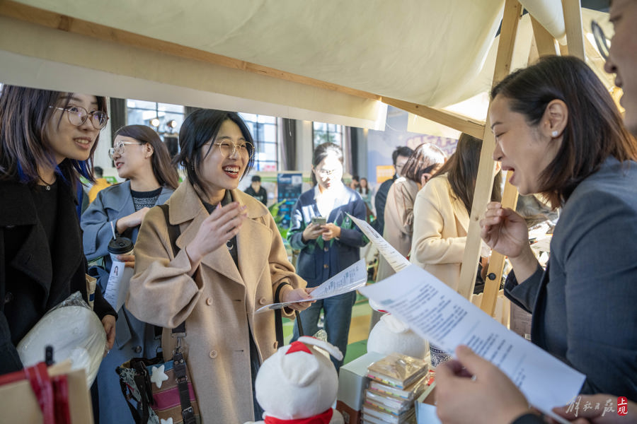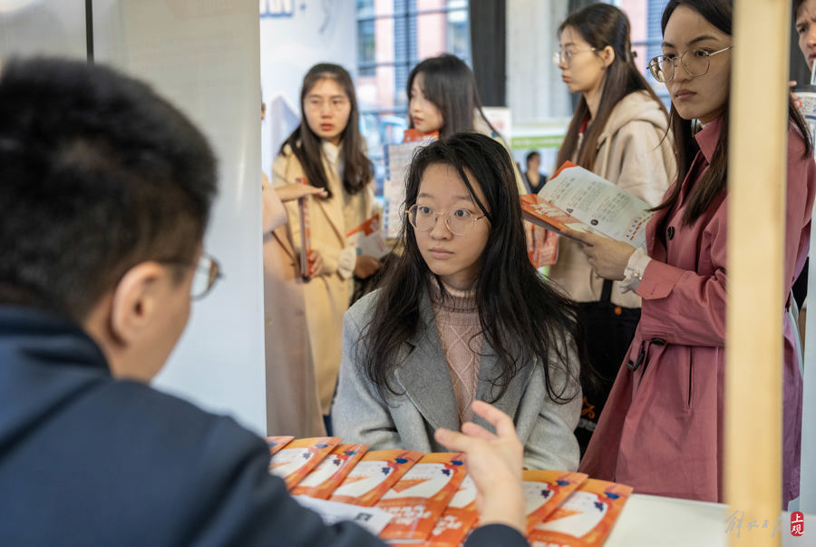 2023年11月22日,在静安800秀创意园举行的招聘会上,政府机关提供的挂职实习岗位特别受学生关注。