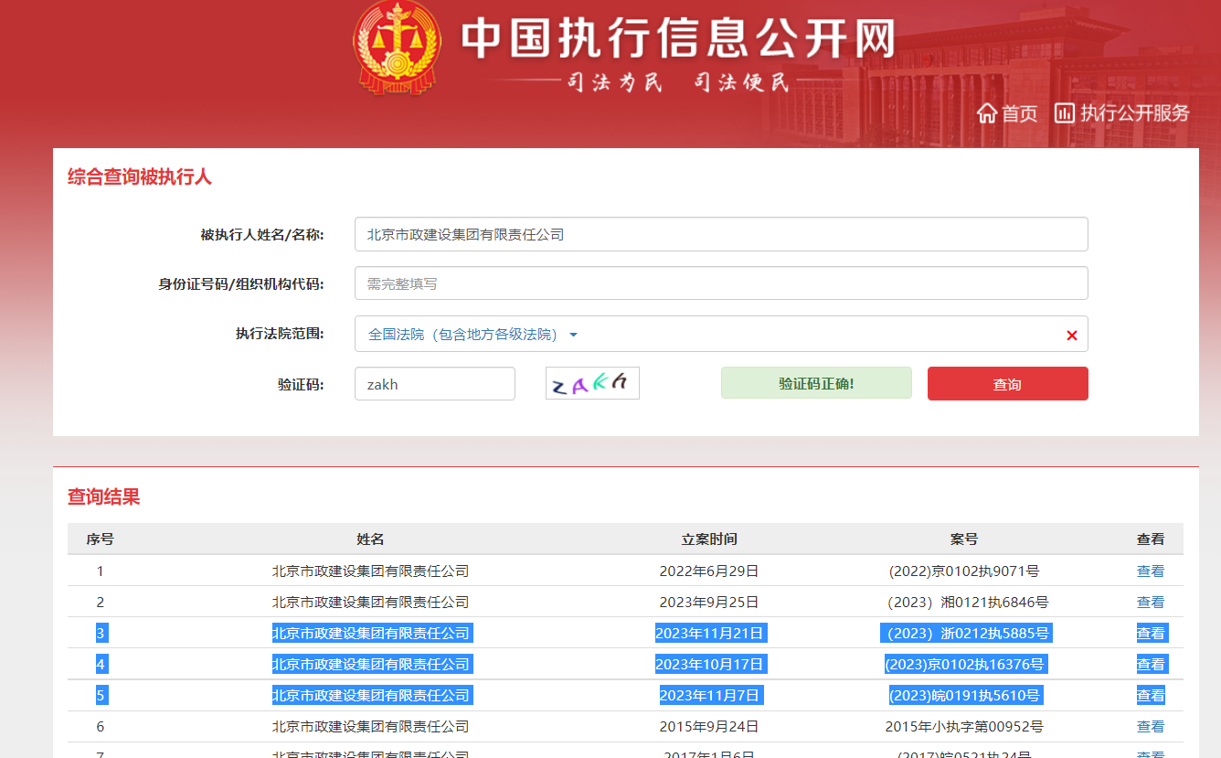 此外,北京市政建设集团有限责任公司近期还新增3条被执行人信息。