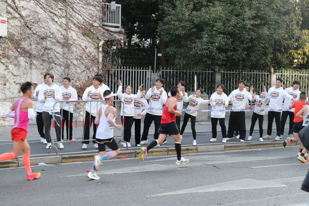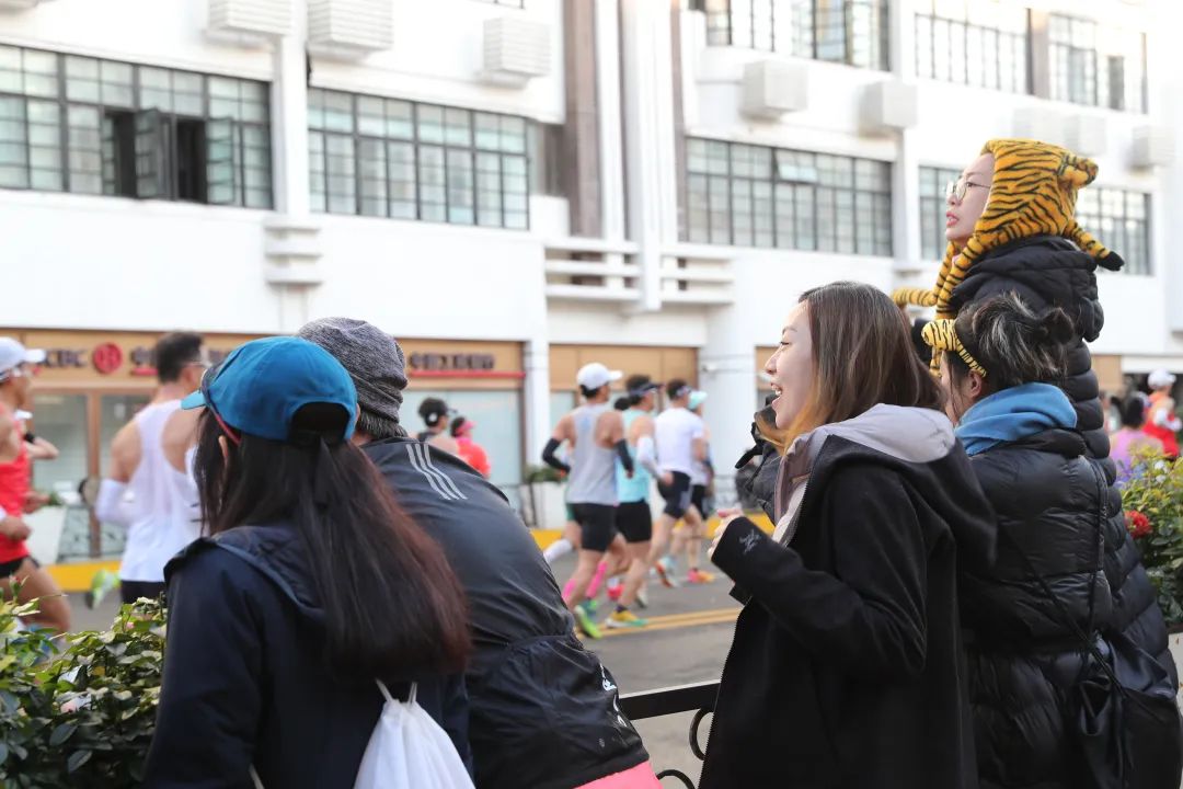 “我们这次大概有将近六十人参与本次比赛,各个年龄层次都有,有一部分报名五公里的(健康跑),大部分都是跑全马的,我们跑团作为一个十多年的老团体,每年都会组织没有参与比赛的团友作为后援,为他们加油鼓劲。”来自天平跑团的跑友陆桔介绍道。