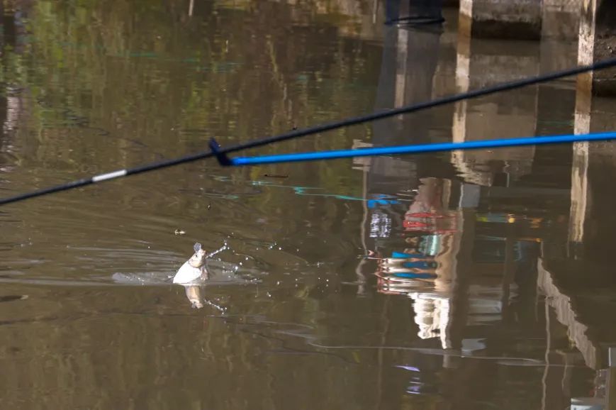 现场,选手抽中自己的座位号后,有序落座,打窝、抛竿、静静等待,看似闲庭信步实则全神贯注。比赛刚开始10分钟就有选手中鱼,约莫是条1斤多的翘嘴鱼,此后就好像触动了鱼塘的开关,水面上水花四溅,选手接二连三中鱼。