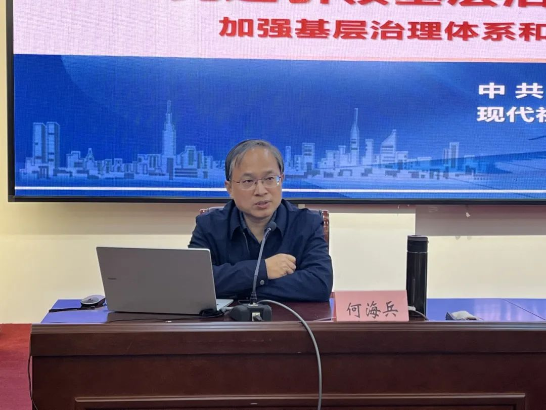 何海兵结合新时代基层社区治理的真实案例,从基层治理的形势与任务、政策与精神、路径与办法三方面展开系统论述,并向社区工作者们分享了关于探索党建引领共建共治共享新格局的成功经验。何海兵的授课具有极强的理论性和丰富的实践内涵,为社区工作者深入探索基层治理现代化新路子指明了方向的同时,进一步提升了基层治理的科学化、精细化、智能化水平。