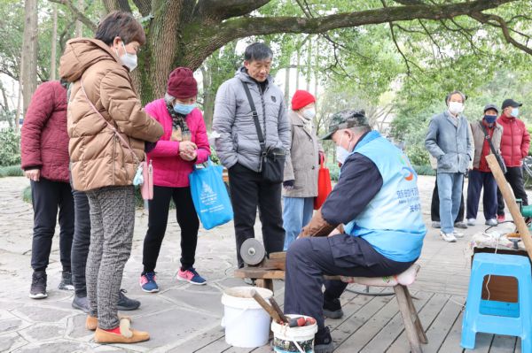 助人之路并不孤独,很快,两名联防队长也加入了,志愿队伍初见雏形。此后,在每月最后一周的周日,志愿服务队在上海植物园3号门进行服务,包括理发、磨剪刀等在内。由于居民较多,用来记录人数及对应需求的本子很快就写满了。通过大家的口口相传,志愿服务队在长桥街道乃至徐汇区内都有了不小的知名度。