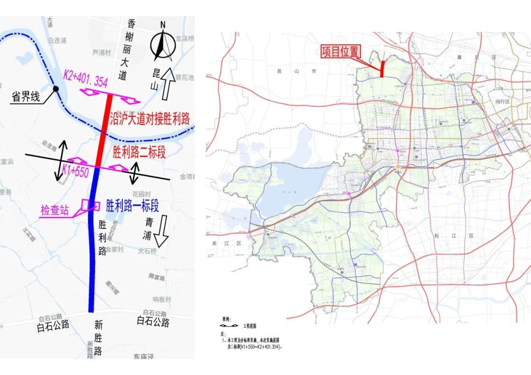 此次通车的青浦区新胜路跨吴淞江大桥(新胜大桥)以吴淞江省界线划分,南接青浦区已建成新胜路,北接昆山市香榭丽大道,道路等级为二级公路,设计速度60公里/时,采用双向4快2慢规模,该桥于本月2日建成通车,通车后对花桥-安亭-白鹤城镇圈的发展具有一定的促进作用。