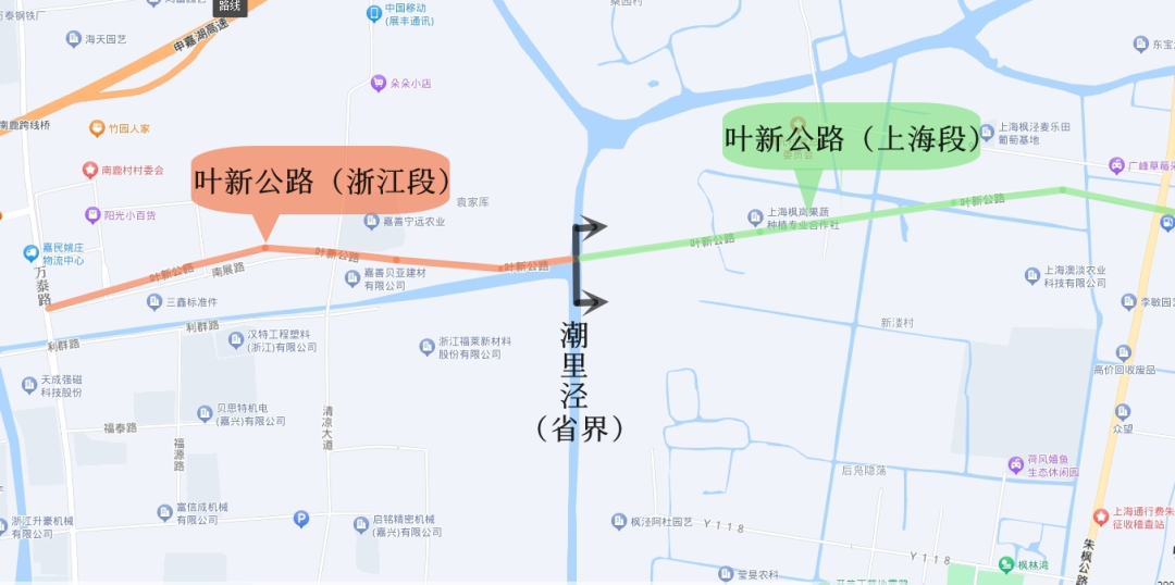 金山区叶新公路项目于2020年12月28日建成通车,是沪浙毗邻地区打通的首条省界断头路。叶新公路(朱枫公路-浙江省界)新建工程西起浙江省界,东至金山区朱枫公路,全长2.24公里。该段道路是叶新-大叶-东大公路的出省段,与嘉善县姚杨公路对接。道路设计时速为80公里/时,双向6车道。