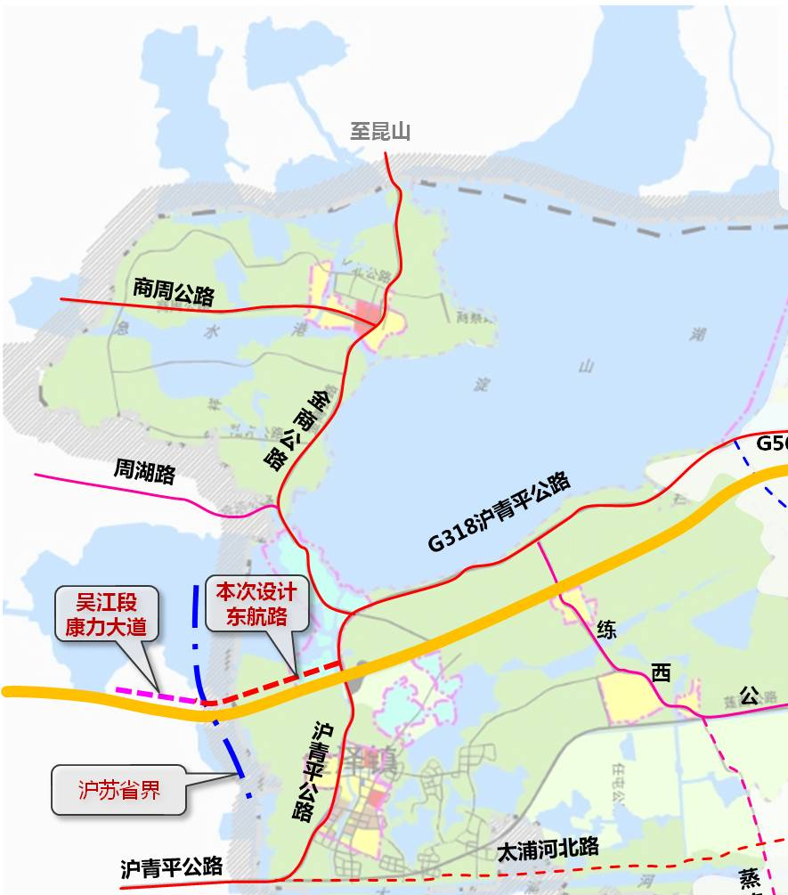 青浦区东航路(沪青平公路—江苏省界)新改建工程于2020年11月9日建成通车,项目位于沪苏交界,与苏州市吴江区康力大道对接,是长三角一体化示范区的重点工程。东航路道路等级为二级公路,建设规模为双向4快2慢车道。道路建成后,青浦至吴江两地的交通距离缩短近10公里。此外,青浦区还开通了毗邻公交,极大提升了青浦、吴江两地之间的通行时效。