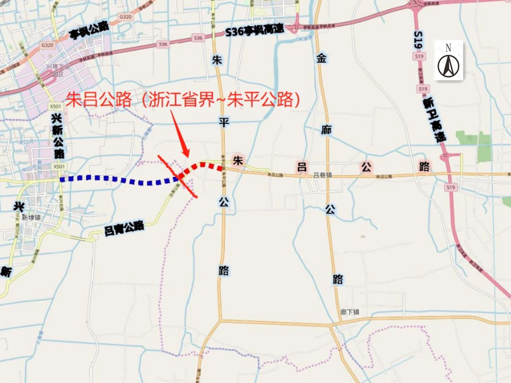朱吕公路(浙江省界-朱平公路)新建工程于2021年4月28日建成通车。该项目西起浙江省界,东至金山区朱平公路,全长约1.56公里,技术等级为二级公路,建设规模为双向4快2慢。
