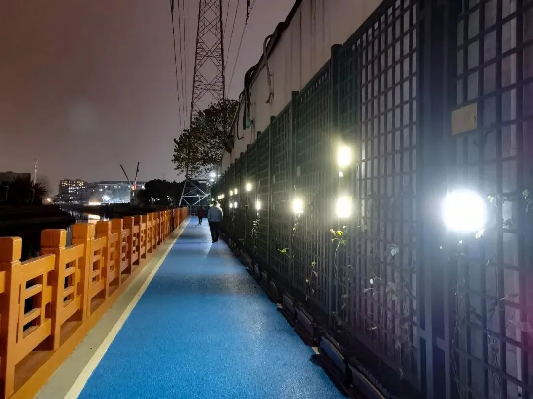 优化照明设置,保障夜间散步安全。充分考虑周边居民对步道的夜间使用需求,对周边照明设施进行了优化调整,提升了亮度和清晰度,照亮着脚下的每一段路,让市民群众健身更安全、更便捷,也让夜晚的步道更柔和、更静谧。