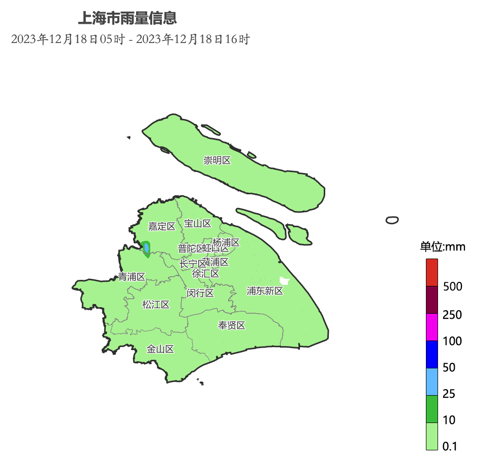 申城12月18日早晨下起了雪,“上海下雪”冲上了热搜。不过12月18日的雪下得“不认真”,上午就逐渐转为小雨了。统计12月18日5时至16时降雨量,全市大部降水量在3~7毫米。阴雨天气打压下,气温“趴窝”,最高气温在4~7℃附近,体感湿冷。