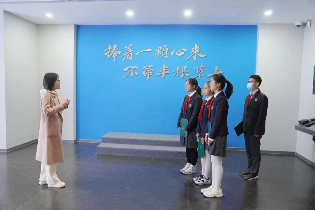 世外附属宝山大华实验学校学生志愿服务队在纪念馆教师鲍广蕾、张文博的指导下,在志愿讲解岗位上传播教育家风采,弘扬志愿精神。讲解的过程是学生们学习的过程,也帮助他们树立良好的劳动观念,在服务他人、奉献社会的过程中培育美好心灵、强化责任意识、提高实践能力,系好“人生第一粒扣子”,厚植社会主义核心价值观。