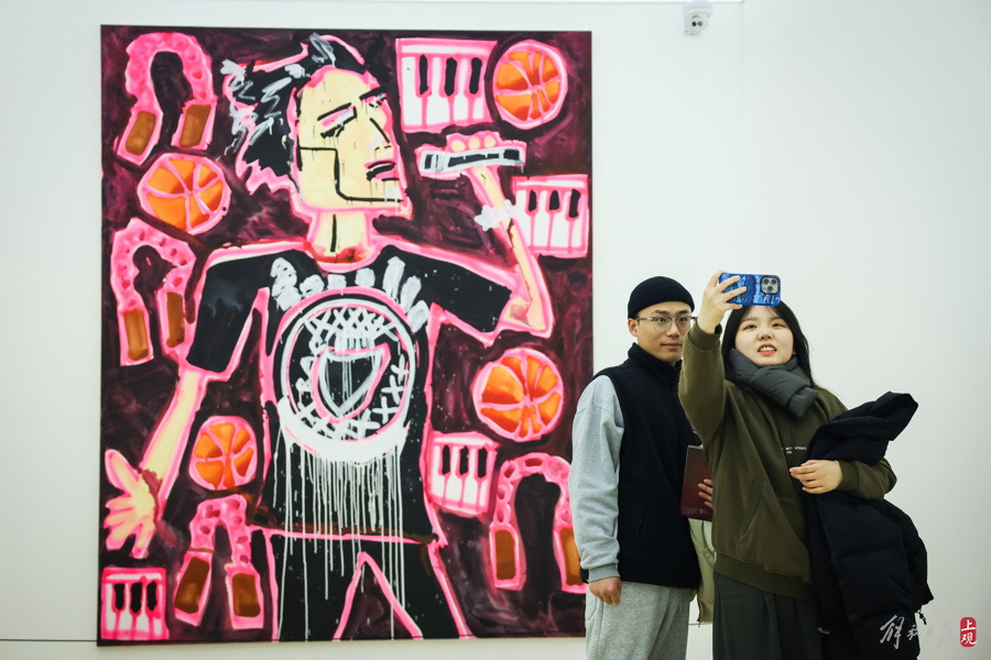 2023年12月24日,人们来到位于衡复历史风貌区的地标锦和越界·衡山路8号,参观《艺起“杰”作》艺术展。