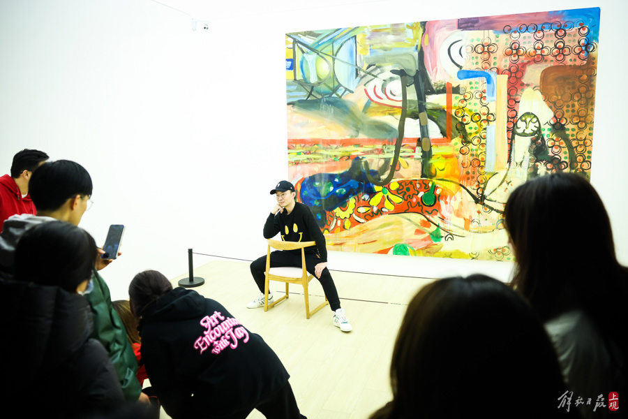 人们来到位于衡复历史风貌区的地标锦和越界·衡山路8号,参观《艺起“杰”作》艺术展。