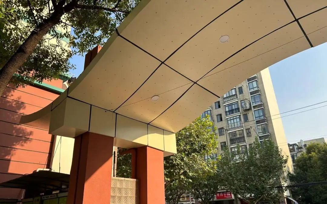 在大华三村第五居民区所辖的远景佳苑小区,位于南门进出口的门头年久失修、墙皮龟裂剥落、装饰板开裂脱落,既不美观也不安全。居民区在实地走访过程中发现,居民对门头改建的呼声尤为强烈。“三驾马车”在经过多次的现场勘察和居民线下会议后,最终敲定了改造方案,并于九月下旬正式动工。
