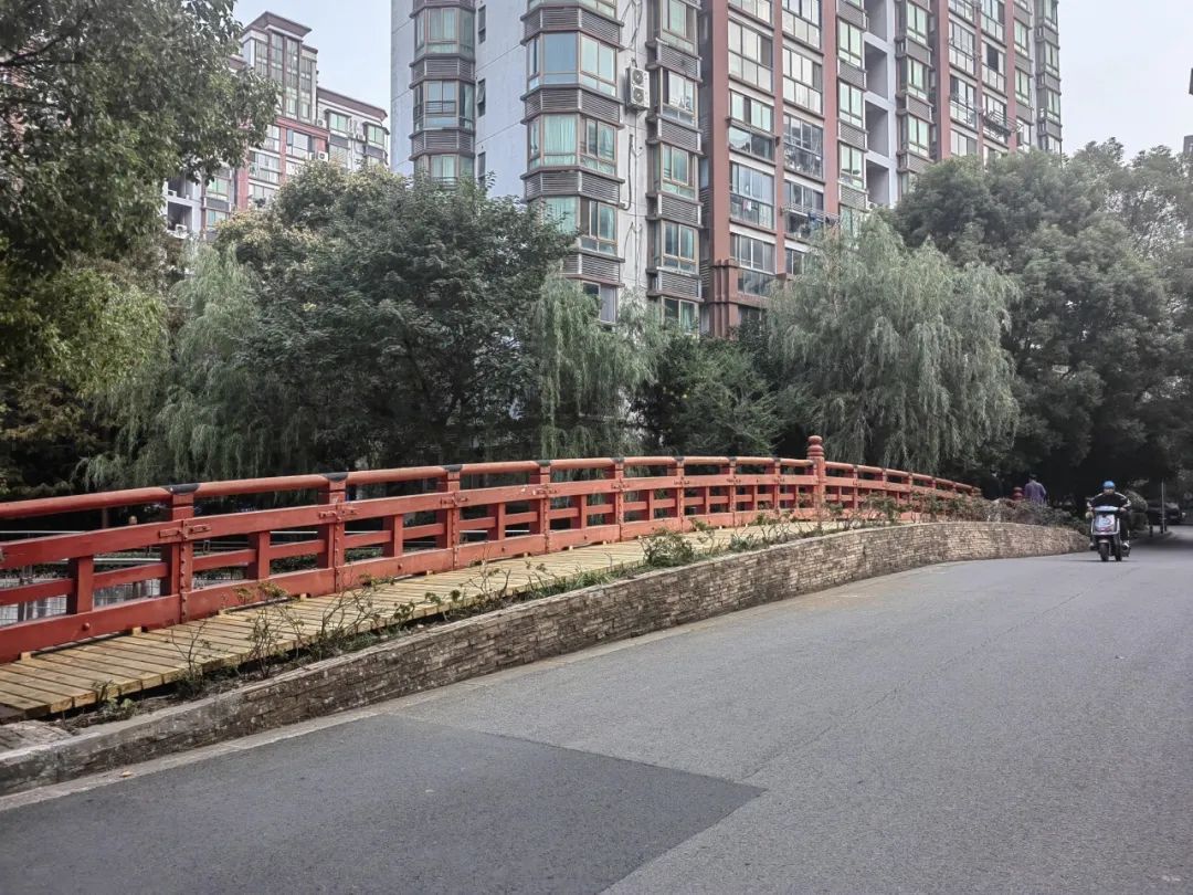 城市绿洲第二居民区所辖的学府涵青小区有一条涵青河,因此小区内建有人行桥、公路桥、旱桥、闸桥等桥梁,成为一大景观特色。建成多年,桥体的钢架结构及木地板出现了不同程度的翘裂锈蚀和腐烂等问题,不仅影响桥梁的品质和美观度,也存在安全隐患。